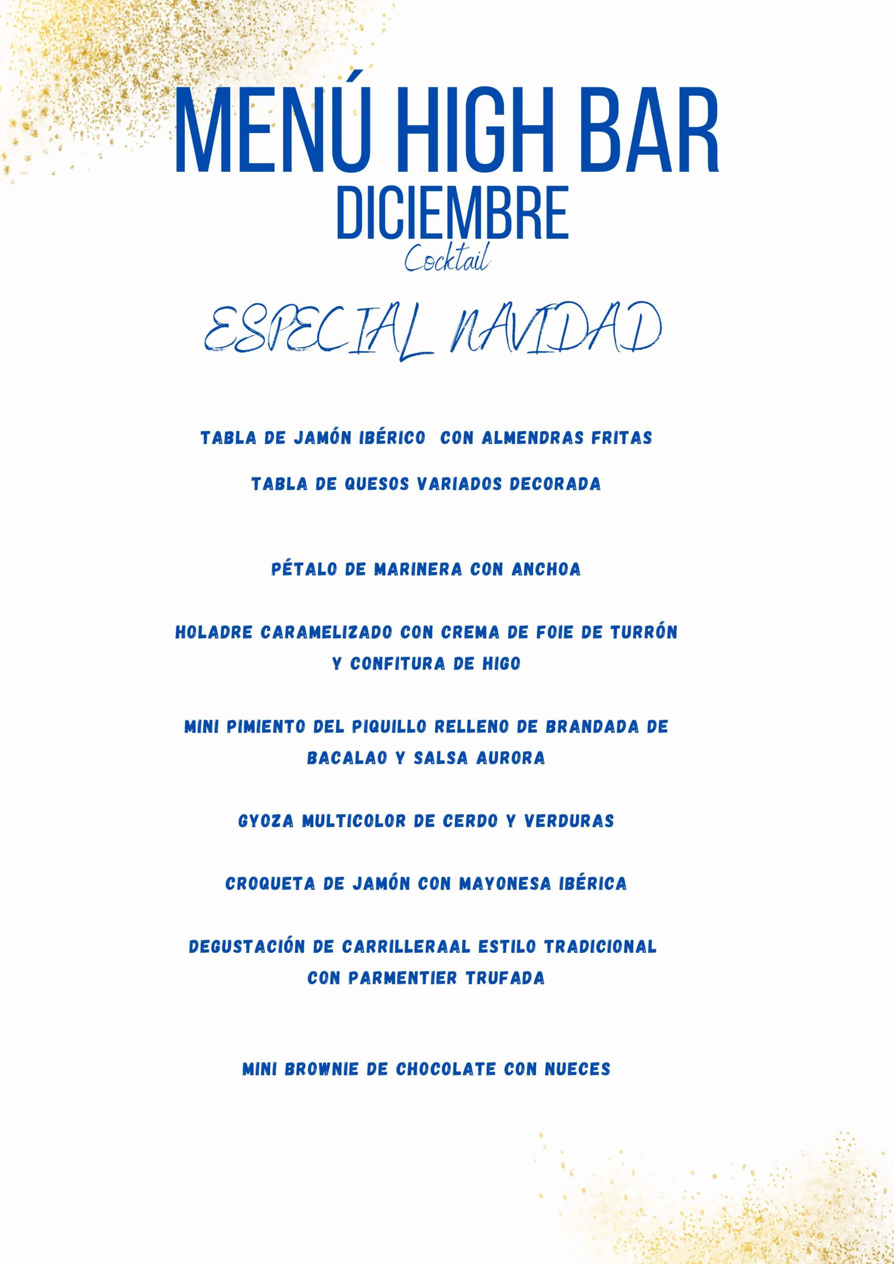El corazón de High Bar es, por supuesto, su propuesta gastronómica. Se trata de un menú tipo cóctel diseñado para disfrutar de pequeños bocados de alta calidad, donde cada plato se convierte en una experiencia por sí misma. La idea es que la comida no solo satisfaga, sino que sorprenda y provoque conversación entre los asistentes.